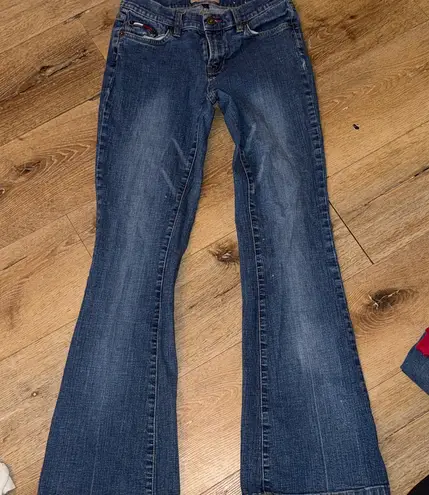 Chic dark blue flare jeans. Comfortable and stylish. Ideal for casual wear.
