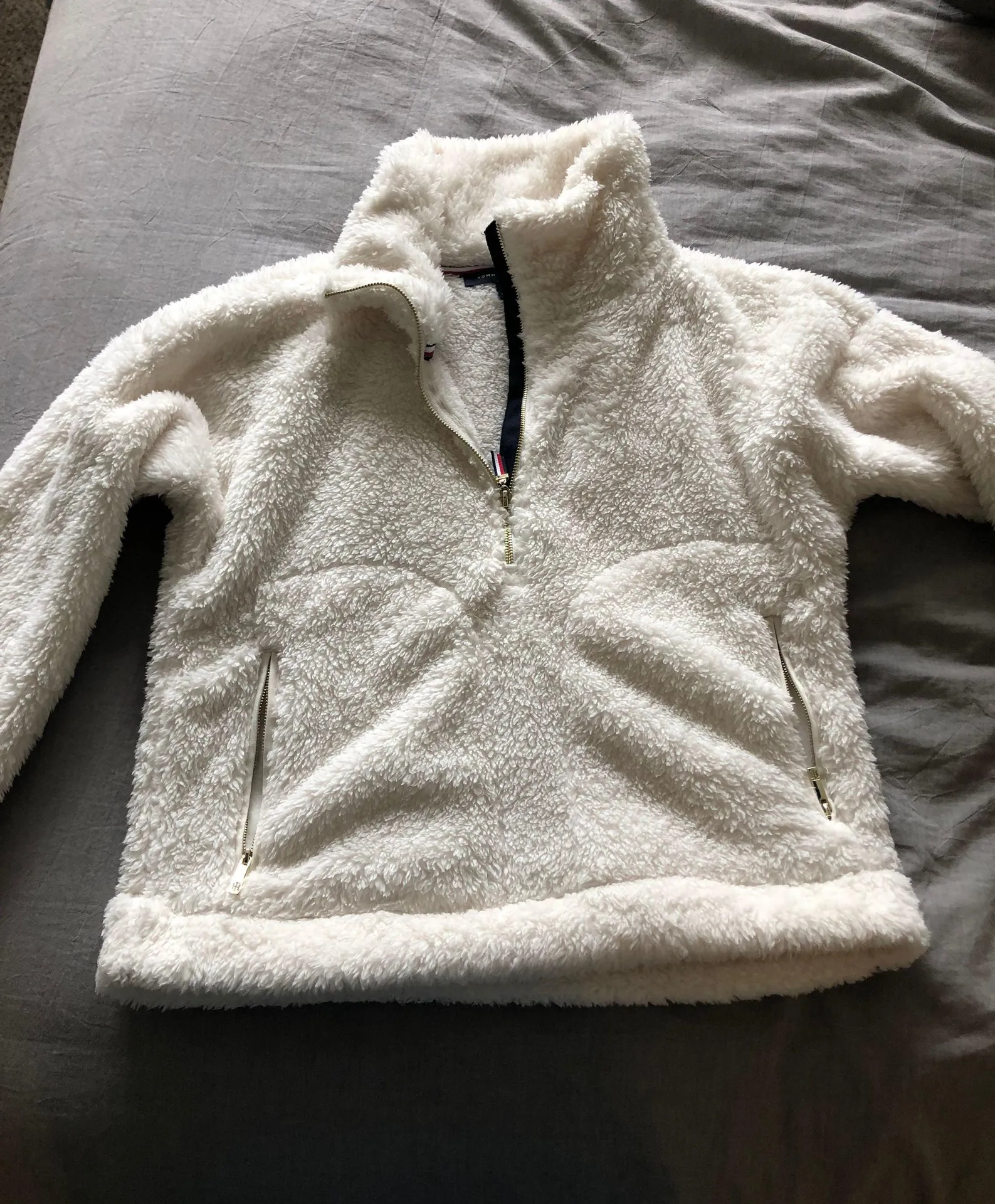 White quarter zip with pockets! Super comfy fuzzy jacket in like new condition.