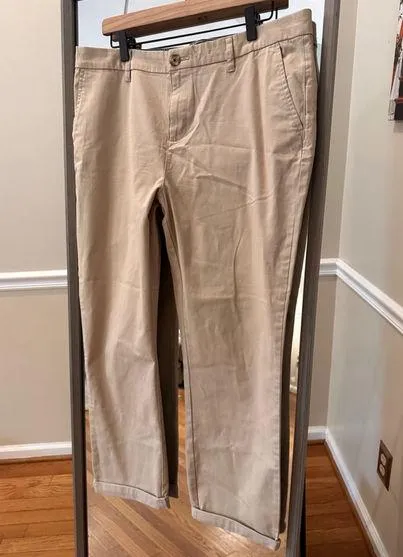 These are pre-owned Tommy Hilfiger khaki pants in a light beige color. They are made of a cotton ble... Show more