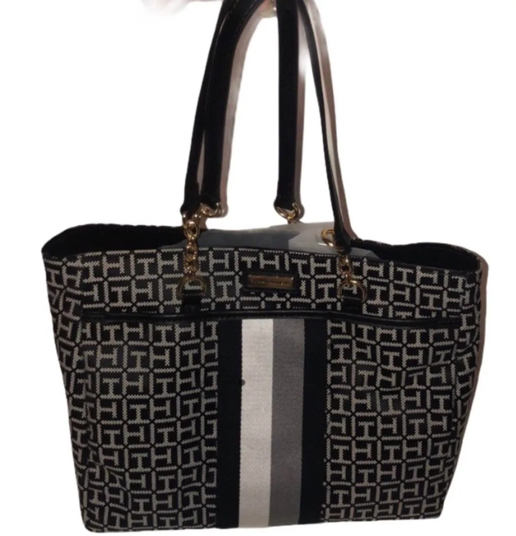 Tommy Hilfiger logo shopper tote So very cute purse has the front snap pocket middle zipper pocket... Show more