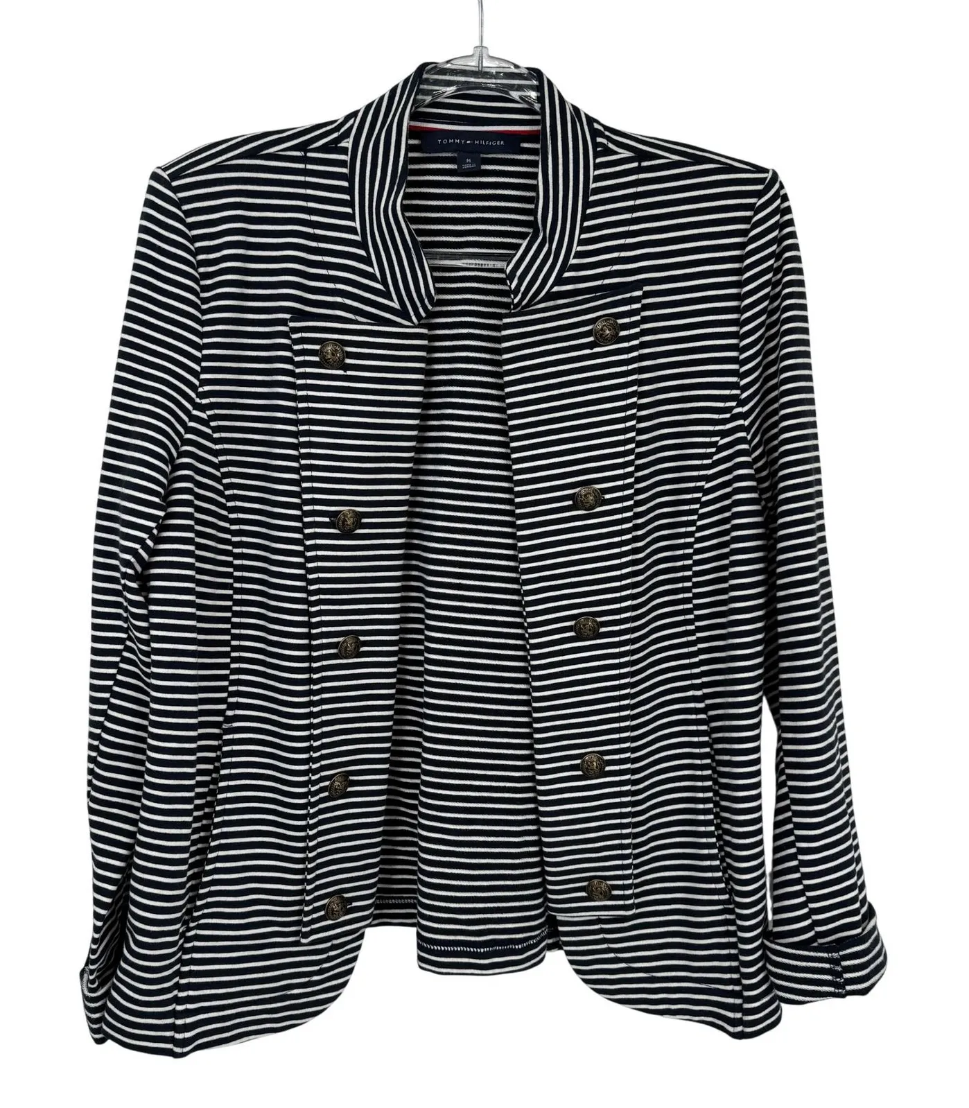 Command attention in this striking Tommy Hilfiger blazer, a symphony of classic navy and crisp white... Show more