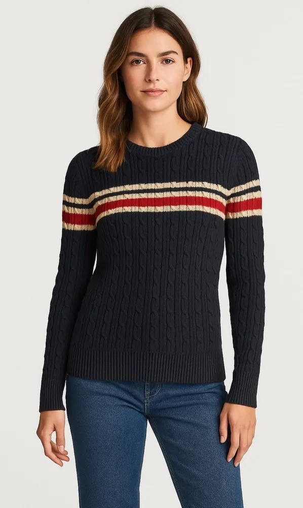 Cozy up in classic style with this Tommy Hilfiger cable-knit sweater — the perfect blend of Preppy S... Show more