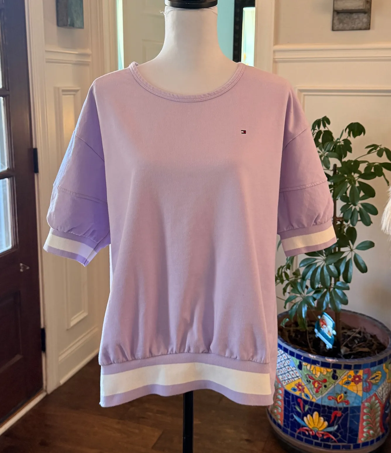 Chic light purple tee with white accents. Features short sleeves and a relaxed fit. SIZE: LARGE PTP... Show more