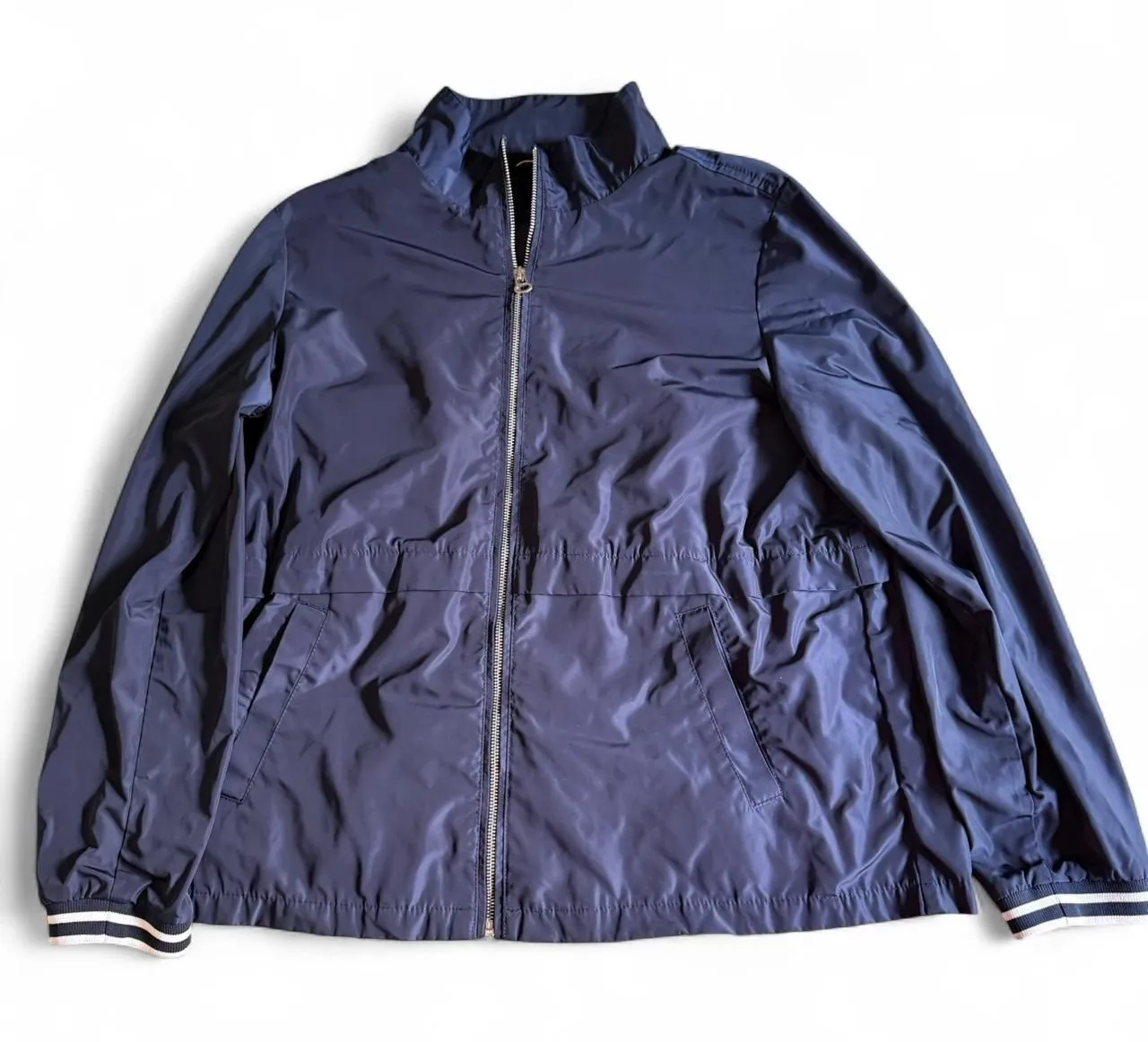 Tommy Hilfiger Women's XL Navy Blue Windbreaker Jacket Full Zip Stand Collar Striped Cuffs Brand: T... Show more