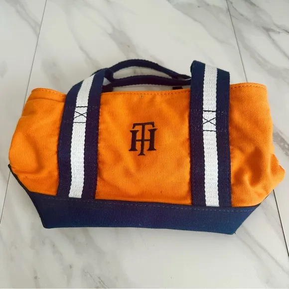 This Tommy Hilfiger toiletry bag showcases a striking orange and blue color scheme, perfect for addi... Show more