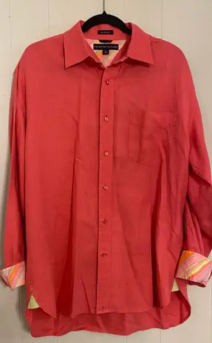 Tommy Hilfiger Long Sleeve Button Down Size Large Rainbow Roll Up Cuffs 100% Linen Flamingo Pink One... Show more