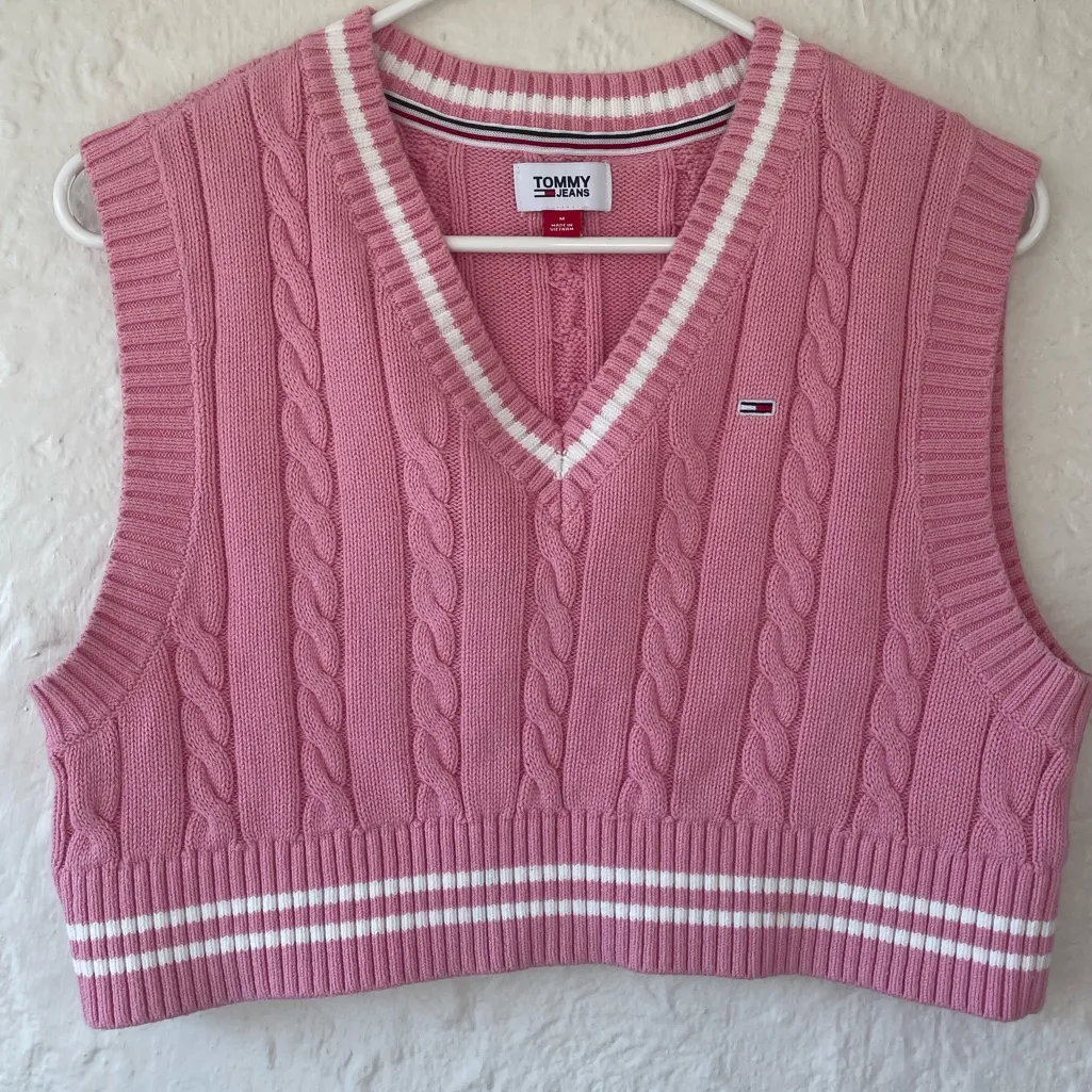 Tommy Hilfiger pink / white cotton cable-knit sweater vest, vneck; size M Size M - $31 - From Kate