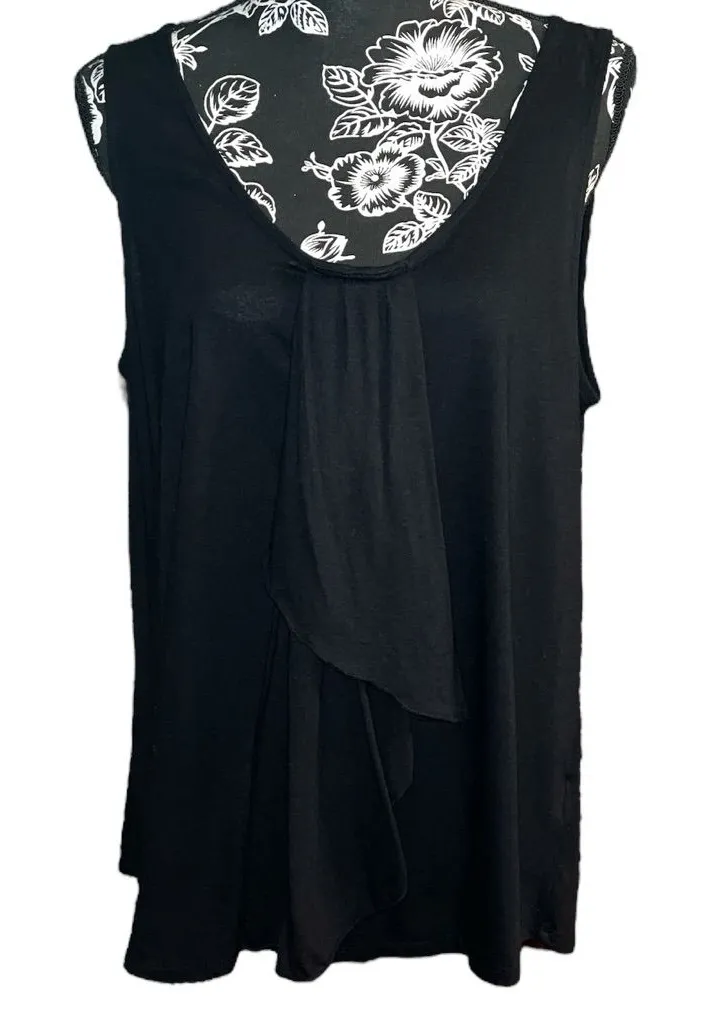 This subtle sleeveless top packs a punch with adorable front ruffle detail Loose fit 60% Cotton 40%... Show more