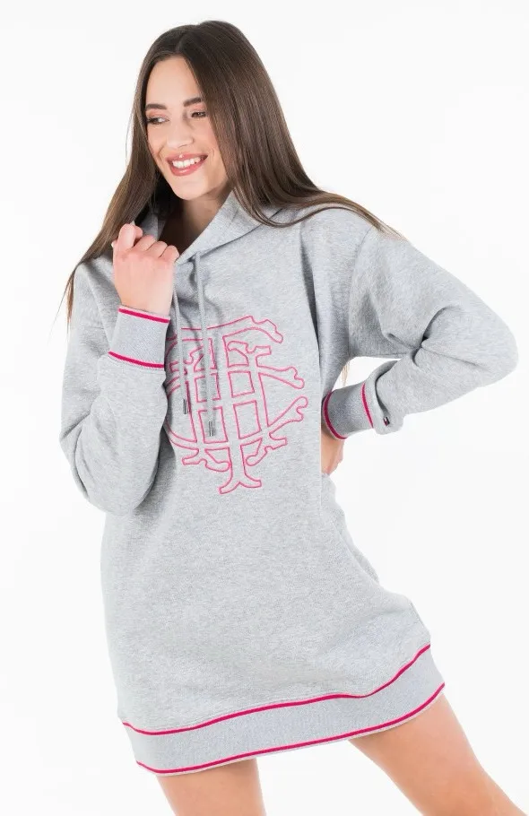 Tommy Hilfiger gray sweatshirt mini dress with hood (no drawstring included), pink embroidered monog... Show more