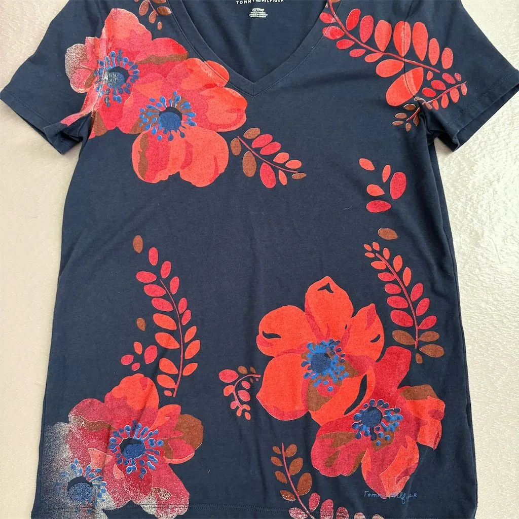 Add a splash of color to your wardrobe with the Tommy Hilfiger Women's Multicolor Floral T-Shirt. Th... Show more