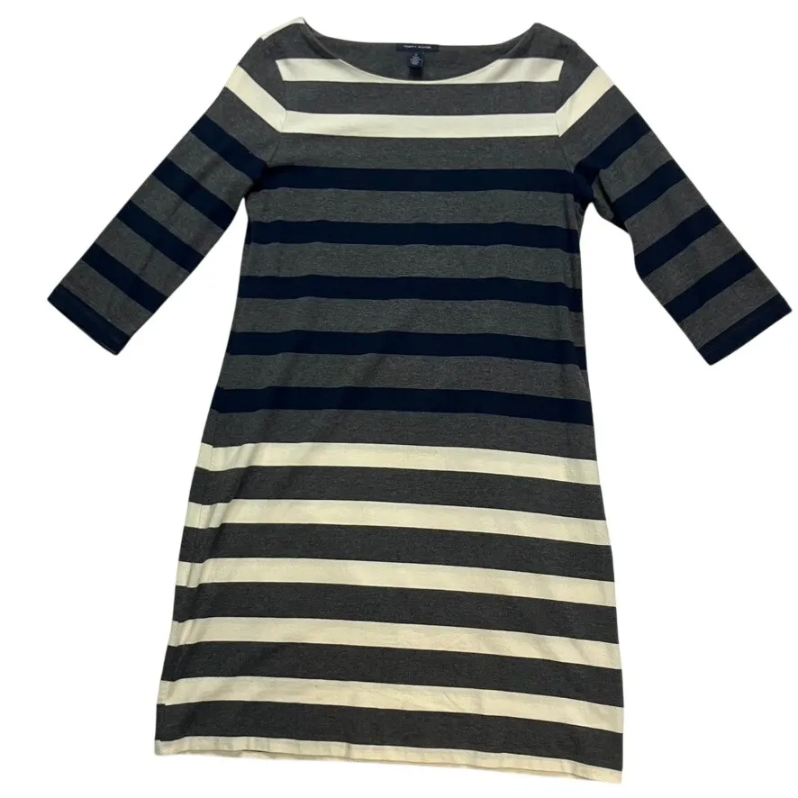 Tommy Hilfiger Women Striped 3/4 Sleeve Boat Neck Casual Dress Size M Nautical Preppy Measurements:... Show more
