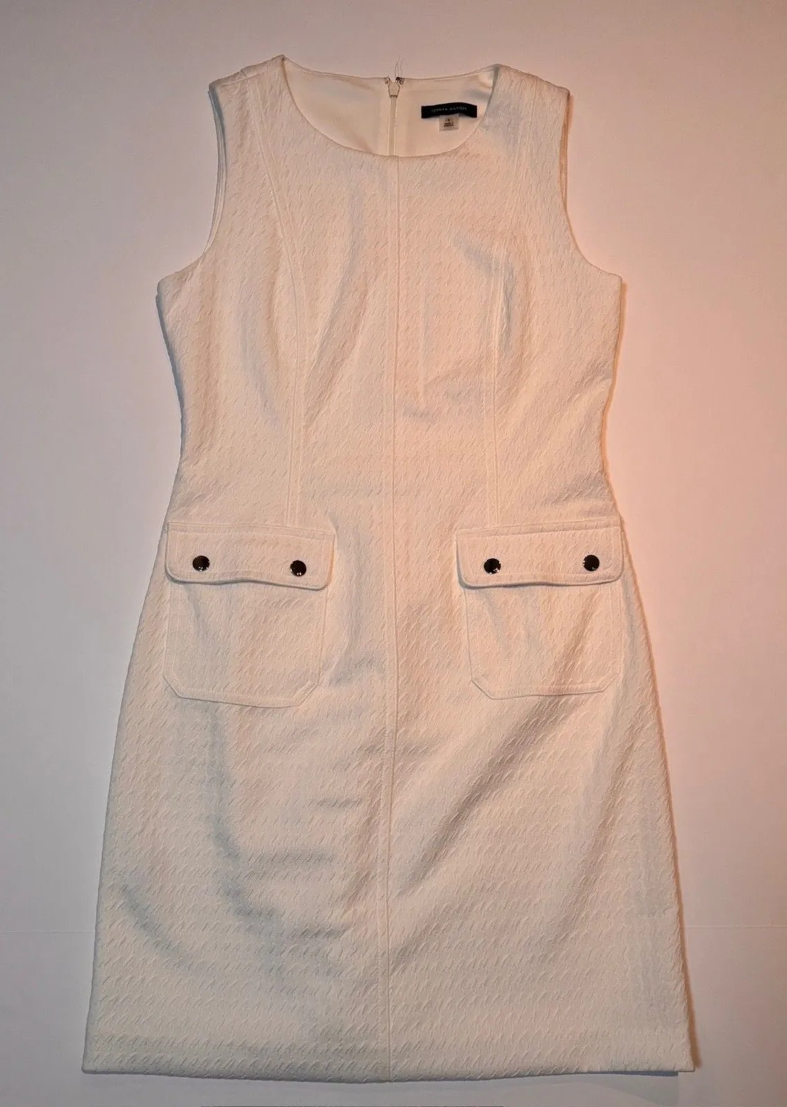 The Tommy Hilfiger Women's Basketweave Sheath Dress in Ivory is a stylish and versatile option for v... Show more