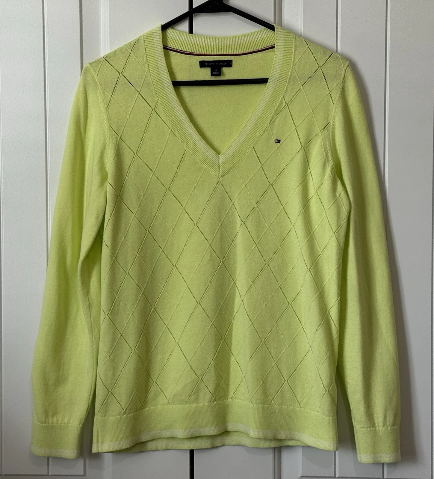 Tommy Hilfiger Women's Lightweight Pima Cotton Sweater - Yellow, V-Neck - Size M Yellow Size M - $18 - From Lindsey