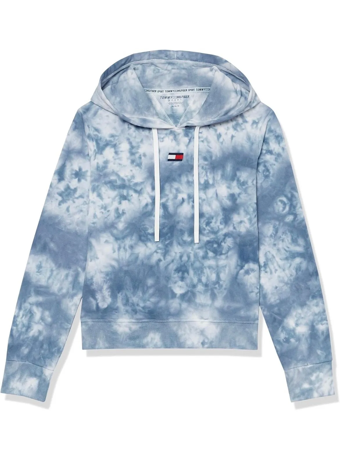 Tommy Hilfiger Women's Logo Flag Drawstring Hoodie Sweatshirt Blue Tie Dye Size M - $19 - From Carolina