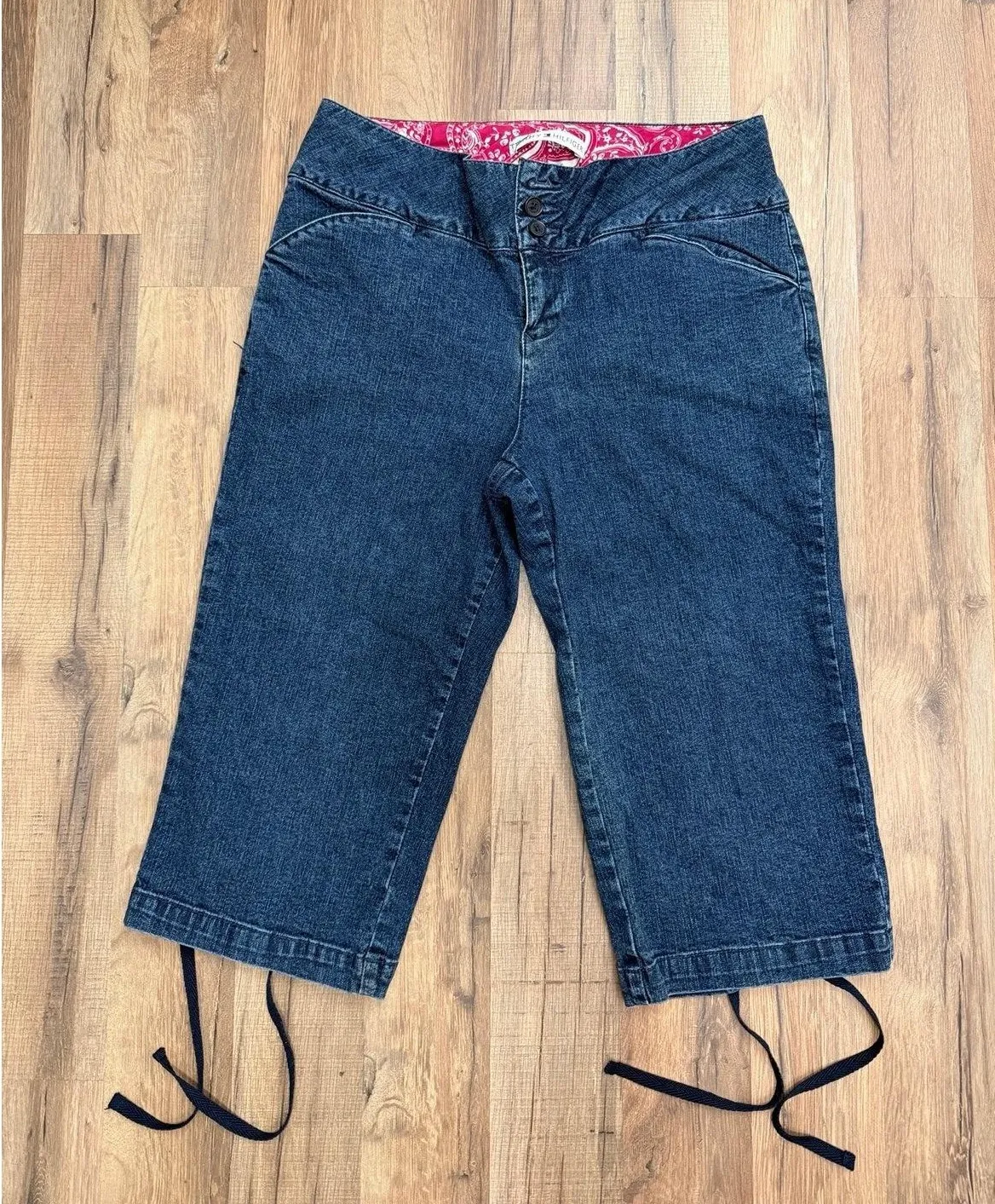 Vintage Y2K Tommy Hilfiger Women's Lace-Up Capri Jeans Size 10 Dark Wash Denim Description: Early 2... Show more