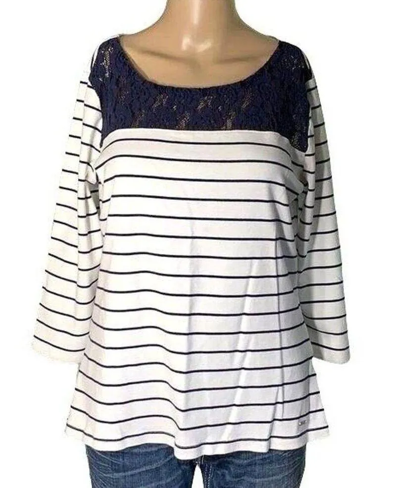 Stripes and Lace Navy and White Top Tommy Hilfiger Condition: EUC Size: Large Description: Blue and... Show more