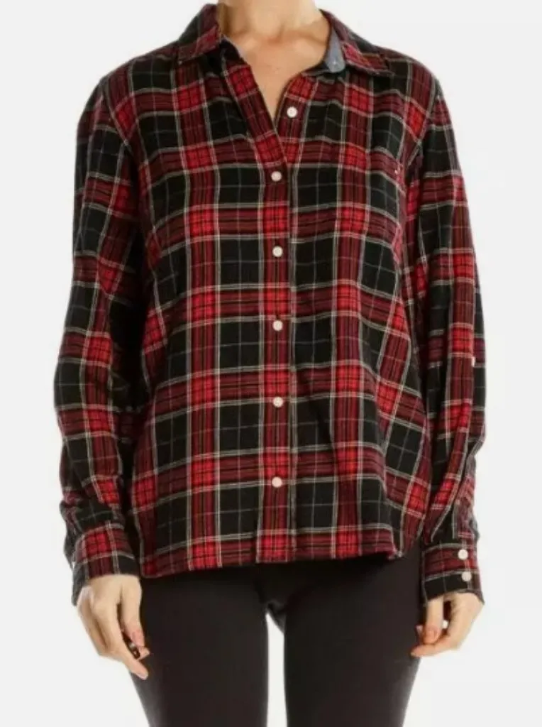 This Tommy Hilfiger Women's Plaid Classic Flannel Shirt in red and black features a collared necklin... Show more