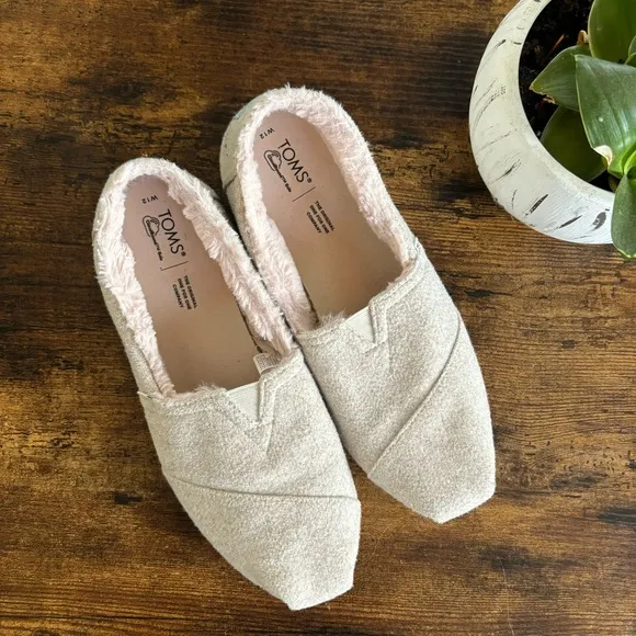 Great pre owned condition Size 12 Felt uppers, faux fur lining. Canvas footbed. Toms signature Clo... Show more