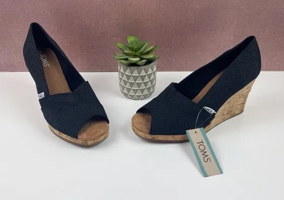 Toms Black Woven Tan Brown Wedge Sandals Shoes Women size 8 New with tag Super cute. Thanks! #074-1... Show more