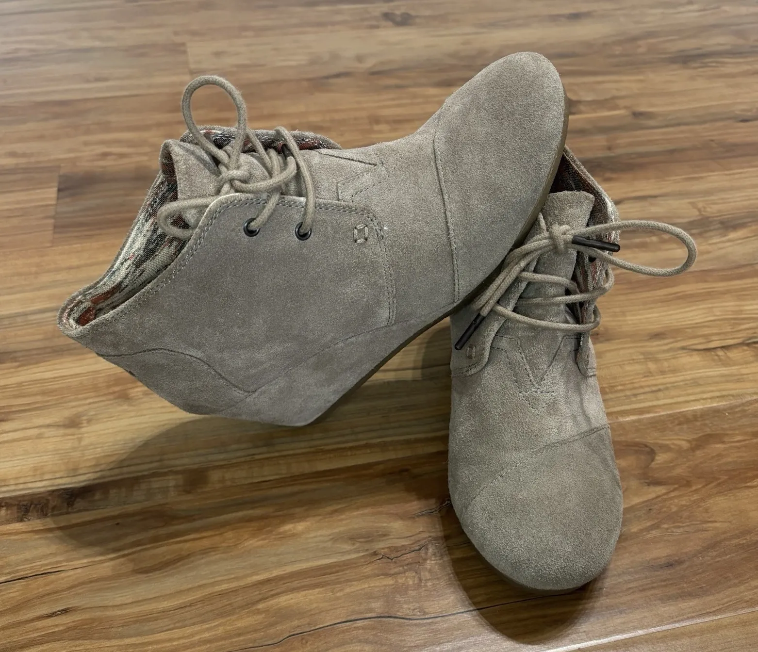 Toms Boots Womens 8.5 Wedge Desert Ankle Booties Brown Suede Lace Up 741115. Condition is Pre-owned.