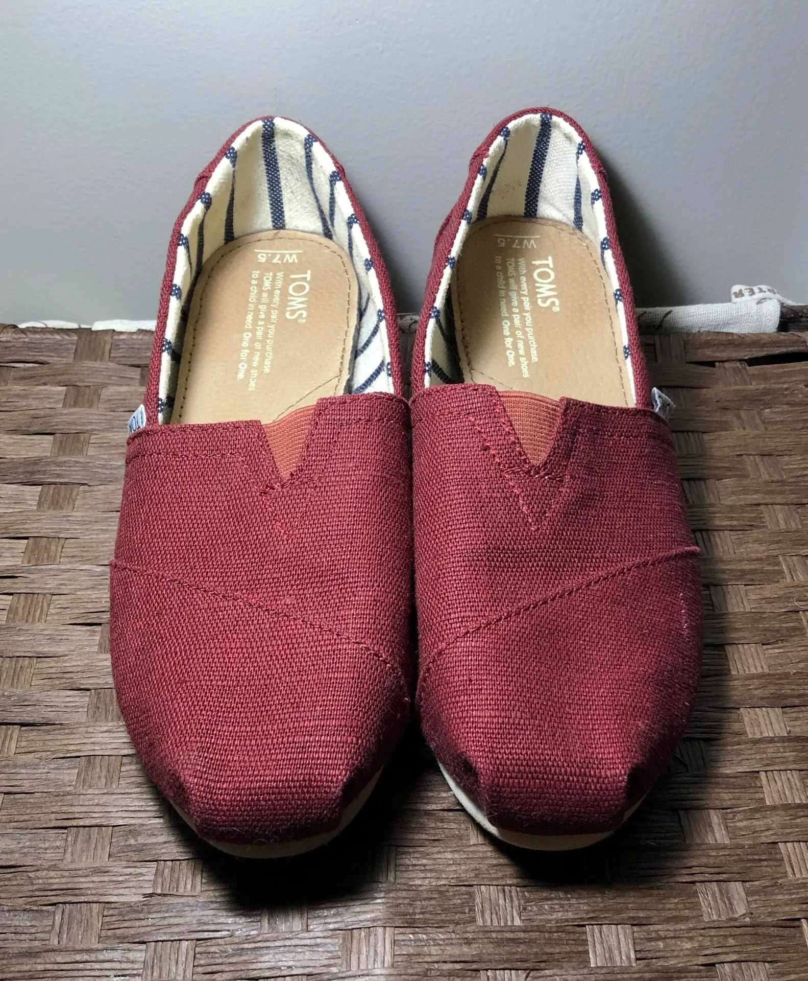 Brand new, never worn maroon toms slip on!