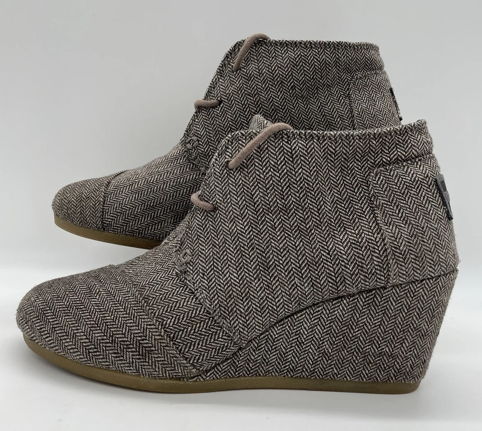 Toms Womens 7.5 Shoes Herringbone Print Desert Ankle Bootie Brown Fabric Wedge Lace Up Condition: E... Show more