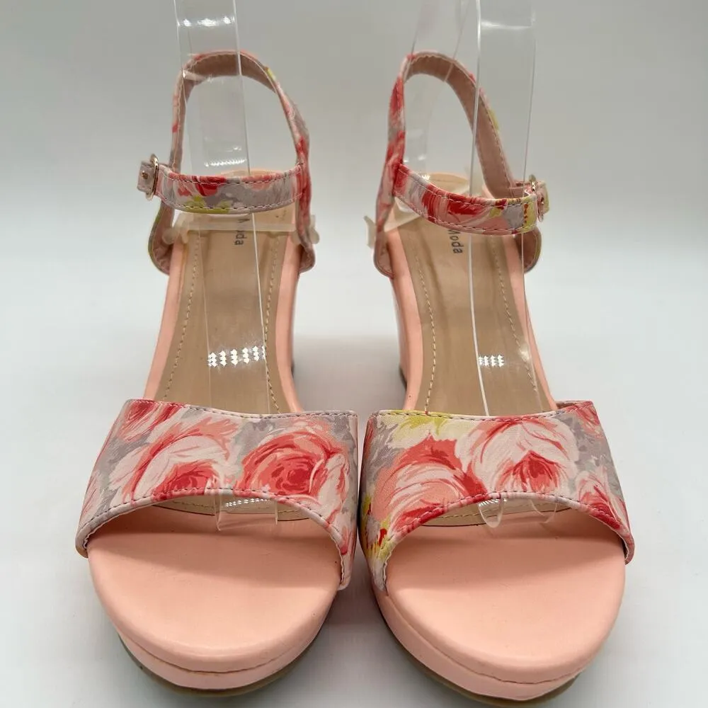 Top Moda Sandal Womens 10 Pink Floral Wedge Open Toe Sandal Features: Buckle Closure Wedge Heel Ope... Show more