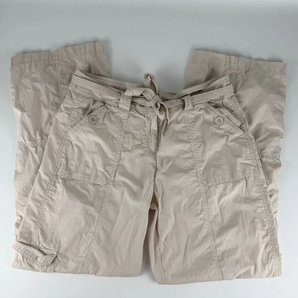 ☆ Brand: Topaz ☆ Color: Cream / Light Beige ☆ Style: Cargo pants with multiple pockets, drawstring waist, casual relaxed fit ☆ Condition: Excellent (no flaws noted) ☆ Features: Lightweight material, button pocket detail, versatile streetwear / casual look These Topaz cream cargo pants are a perfect mix of utility and style. Featuring roomy cargo pockets, a tie waist, and a relaxed straight-leg fit, they’re ideal for everyday wear or Y2K-inspired streetwear looks. Easy to pair with tanks, crop tops, or oversized tees for a laid-back vibe. Size: 14LNG (fits like a size M)