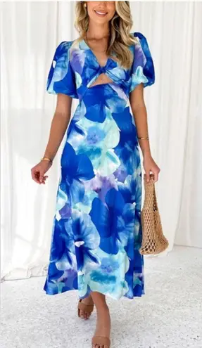 Toperth blue floral v neck twist midi dress Size M - $25 - From Jennifer