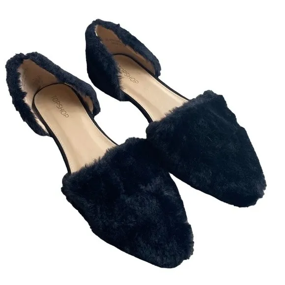 Topshop Ali Black Faux Fur D'orsay Flat Size EU 36/ US 5.5 New Brand: TopShop Condition: Never wo... Show more