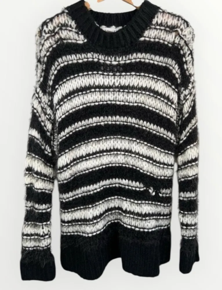 Topshop Black White Striped Crew Neck Distressed Chunky Knit Sweater Extra Small US 0-2 Embrace ef... Show more