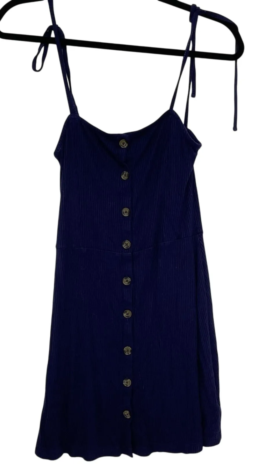 Topshop Blue Ribbed Tie Shoulder Button Down Dress 2 Preowned in excellent condition Yyy7
