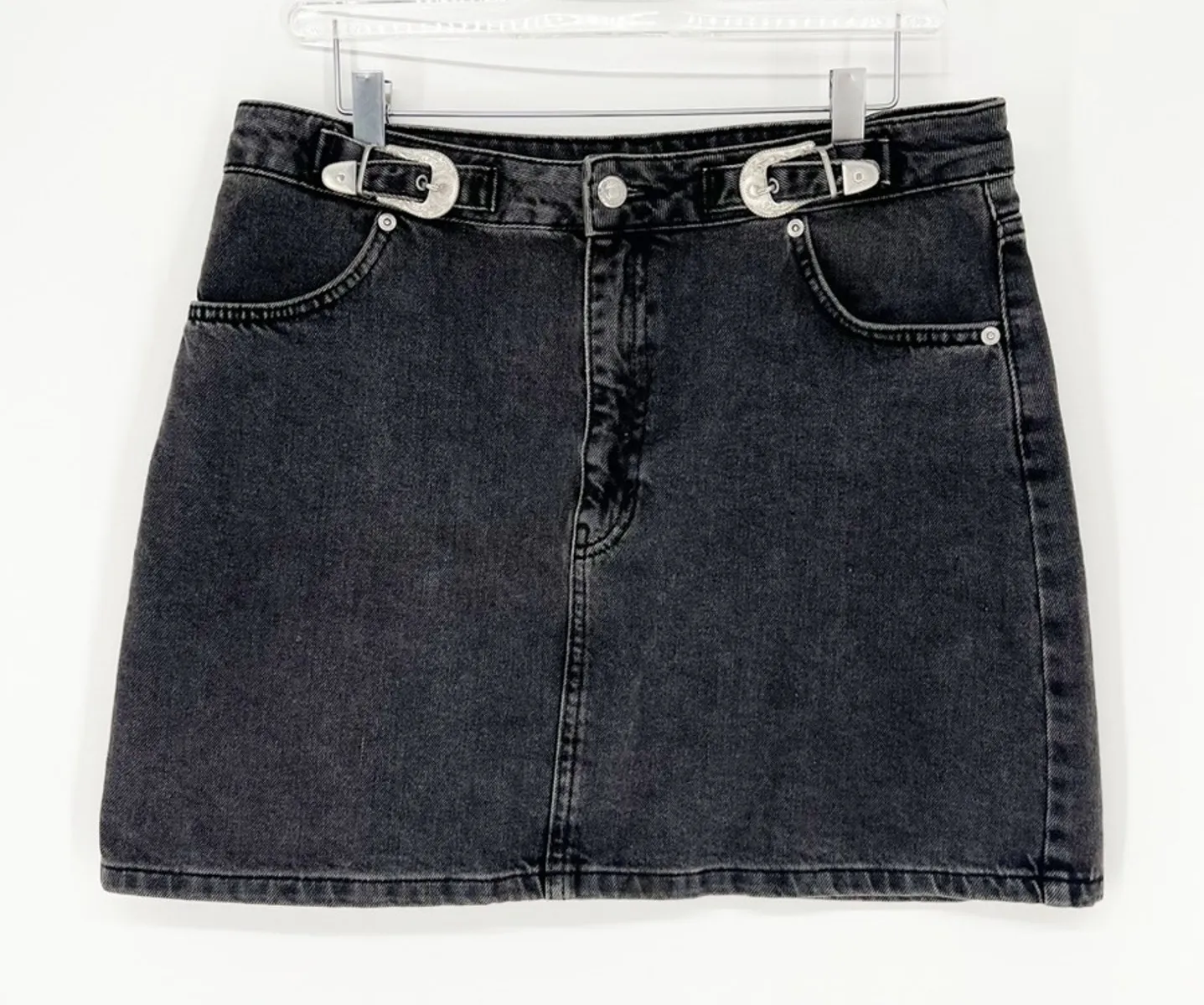 Topshop Buckle Denim Mini Skirt 10 Grey Features: -Buckle detail -5 Pocket -Mini length Fabric: -... Show more