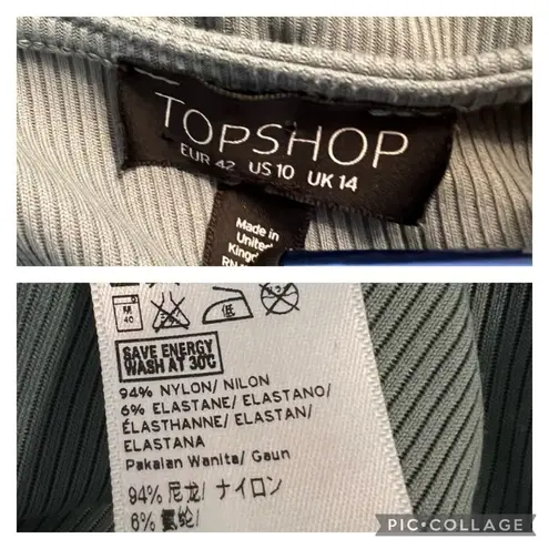 Top Shop Sage Green Ribbed Knit Skater Dress ~ a beautiful fit and flare style with bell sleeves ~... Show more