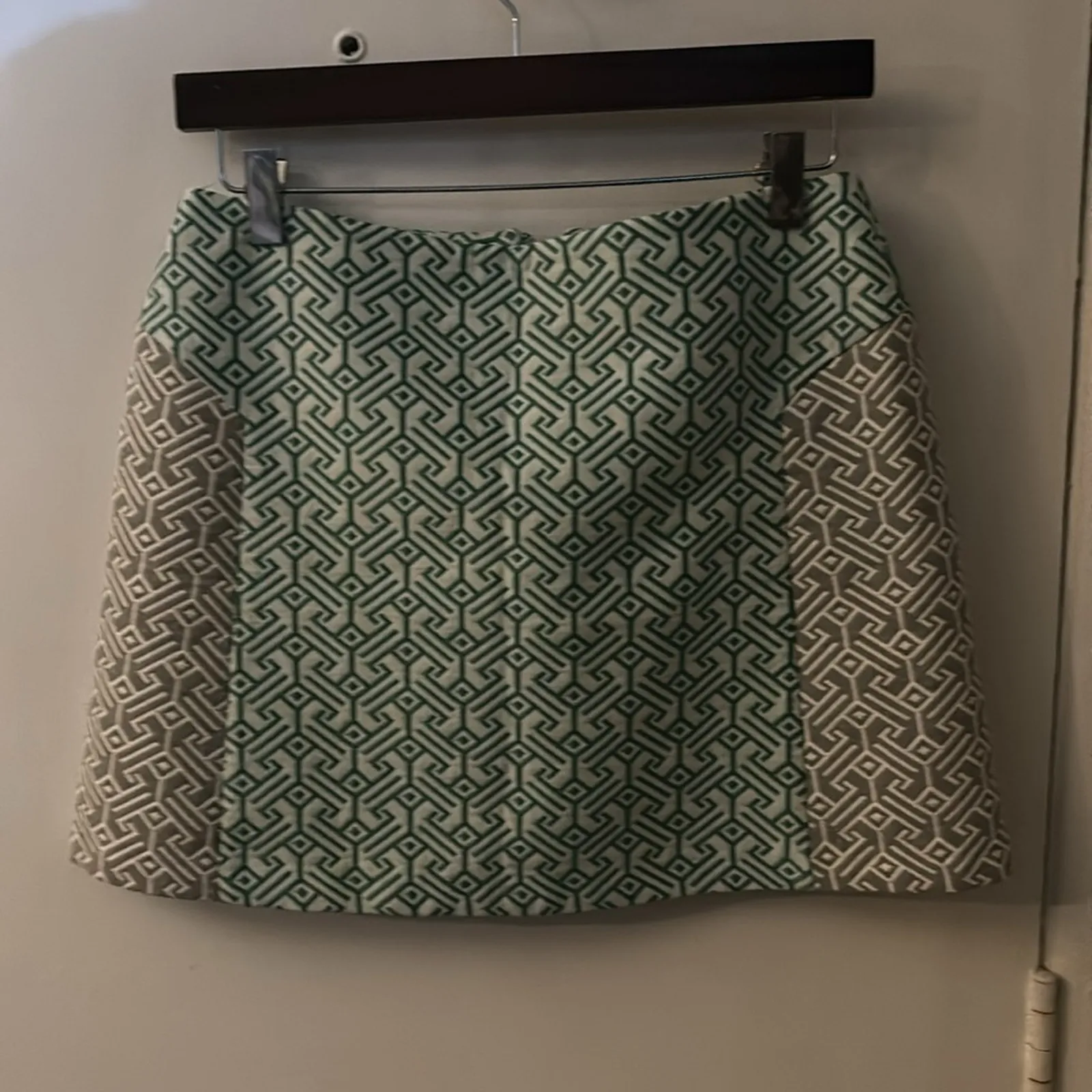 Style: Textured mini skirt Color: Green/Gray/White Size: 8 Waist: 15” Length: 15” Condition: Good 5... Show more