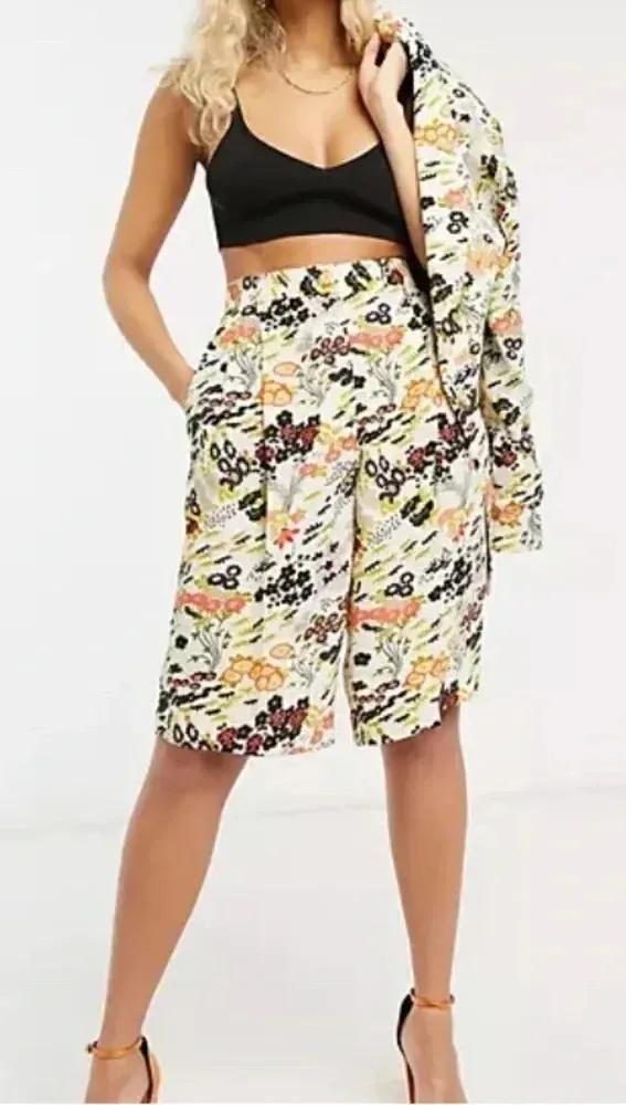 Topshop high rise floral knee length shorts in very good condition. Size 8 Pockets High Rise Kn... Show more
