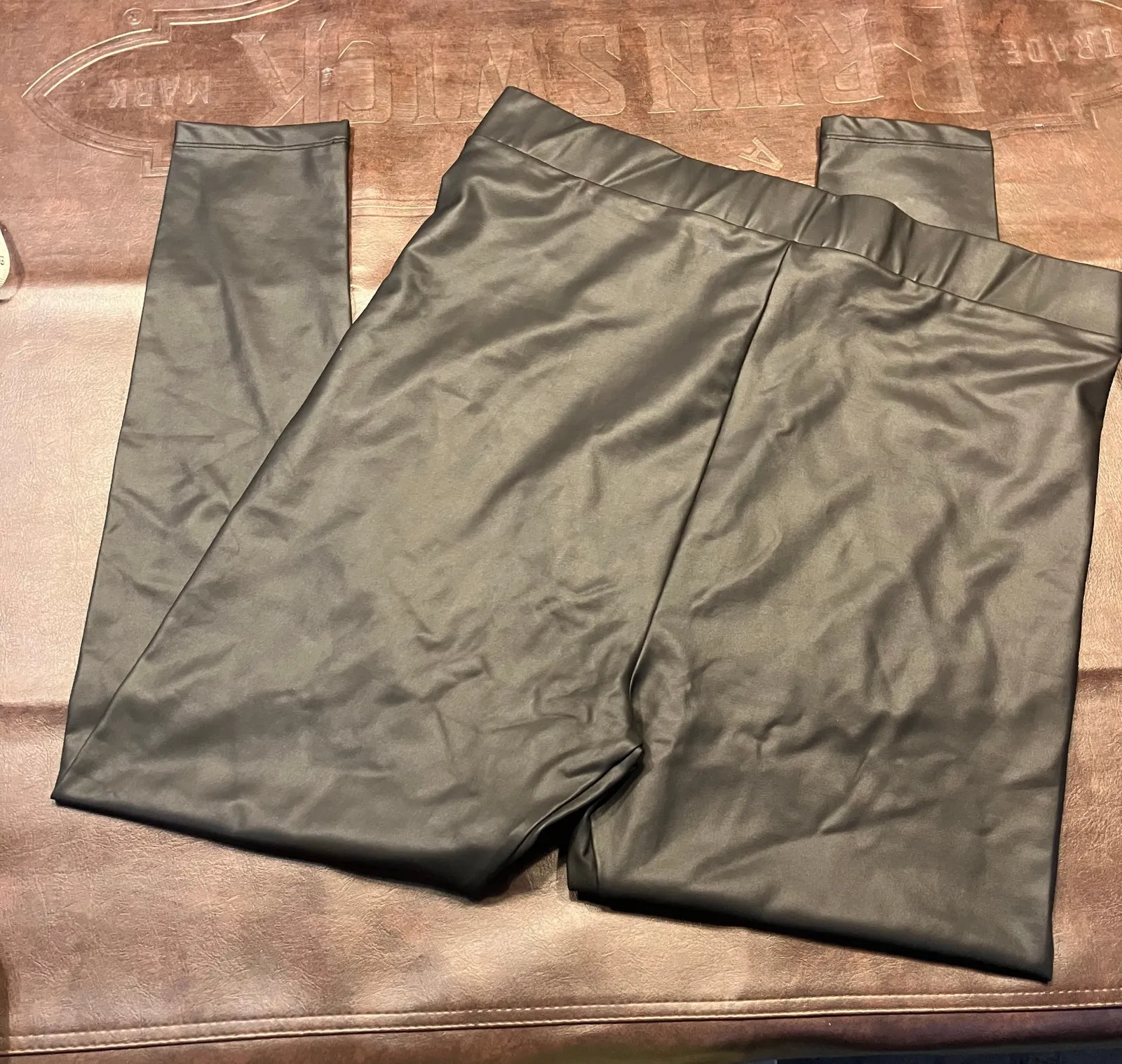 Topshop Maternity Faux Leather Leggings US 14 Black High Rise Stretch Pants Like new From a smoke... Show more