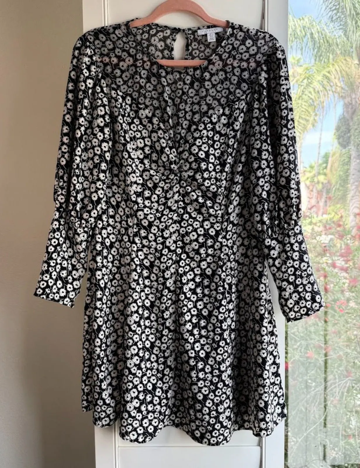 Topshop Puff Sleeve Monochrome Floral Dandelion Heart Print Fit & Flare Mini Dress Size 8 This darl... Show more