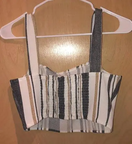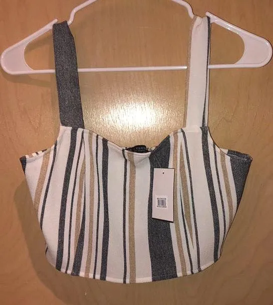 Brand new with tags. TopShop striped cropped tank. The stripes are white, blue and tan. Super cute.... Show more
