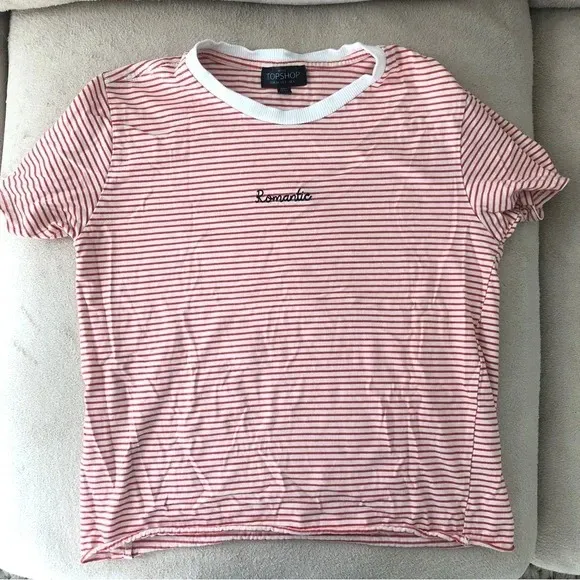 Topshop T Shirt Red and White Stripe with contrast white crew neck collar Short Sleeve Embroidered... Show more