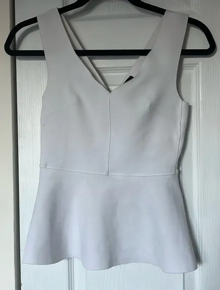 Very cute top made of scuba material. Tapered fit on the chest and a cute peplum cut. V neck front a... Show more