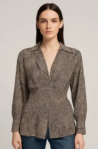 Pre-loved Topshop zebra animal print collared wrap blouse with adjustable tie waist for a flattering... Show more