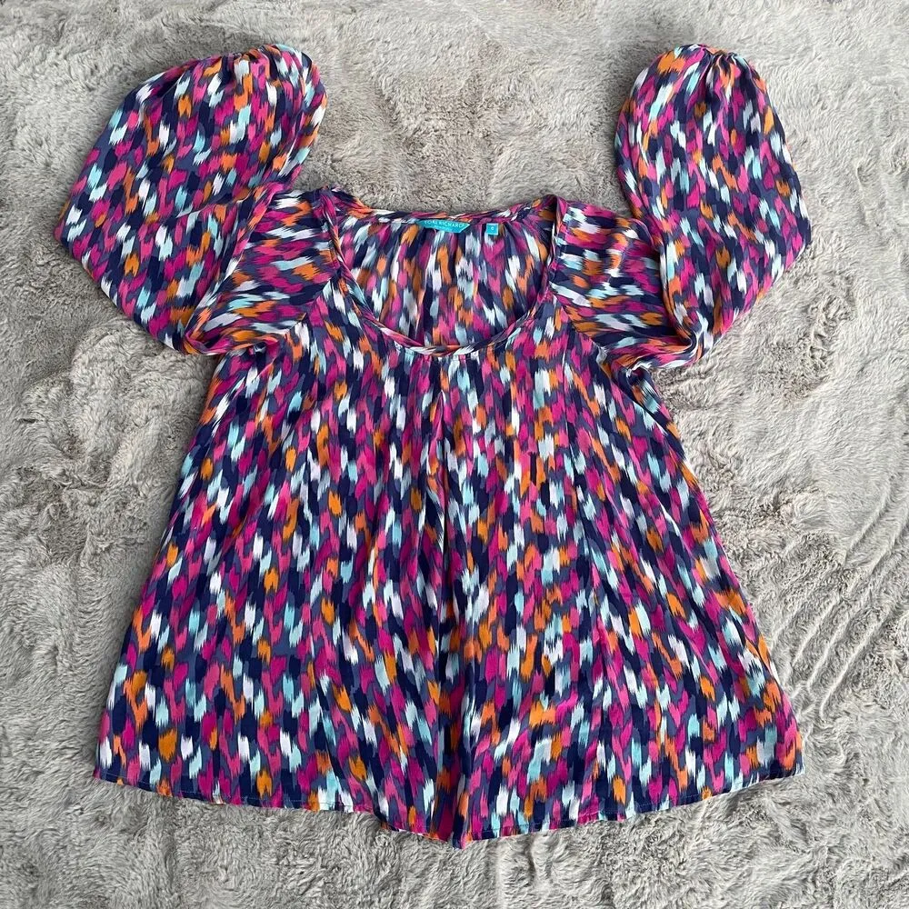 Tori Richard Honolulu Blouse Size 0 XS Confetti Tie Sleeve 100% Silk Career Love - $41 - From Zara