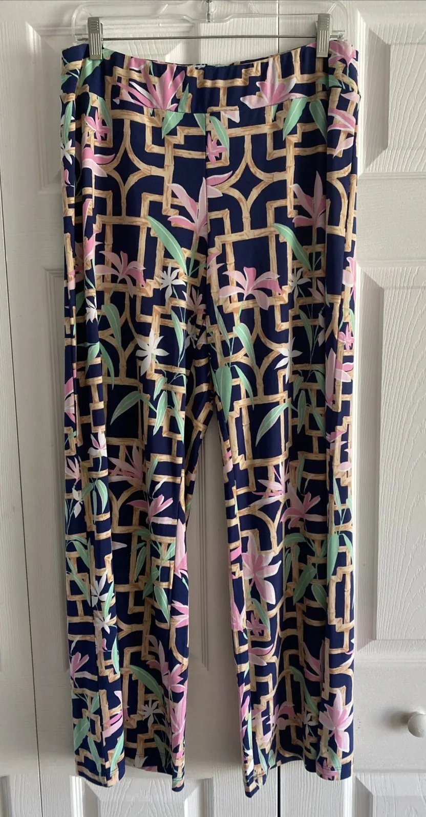 Tori Richard Honolulu Womens Large Bamboo Navy Wide Leg Resort Pants Stretch Blue - $35 - From Arielle