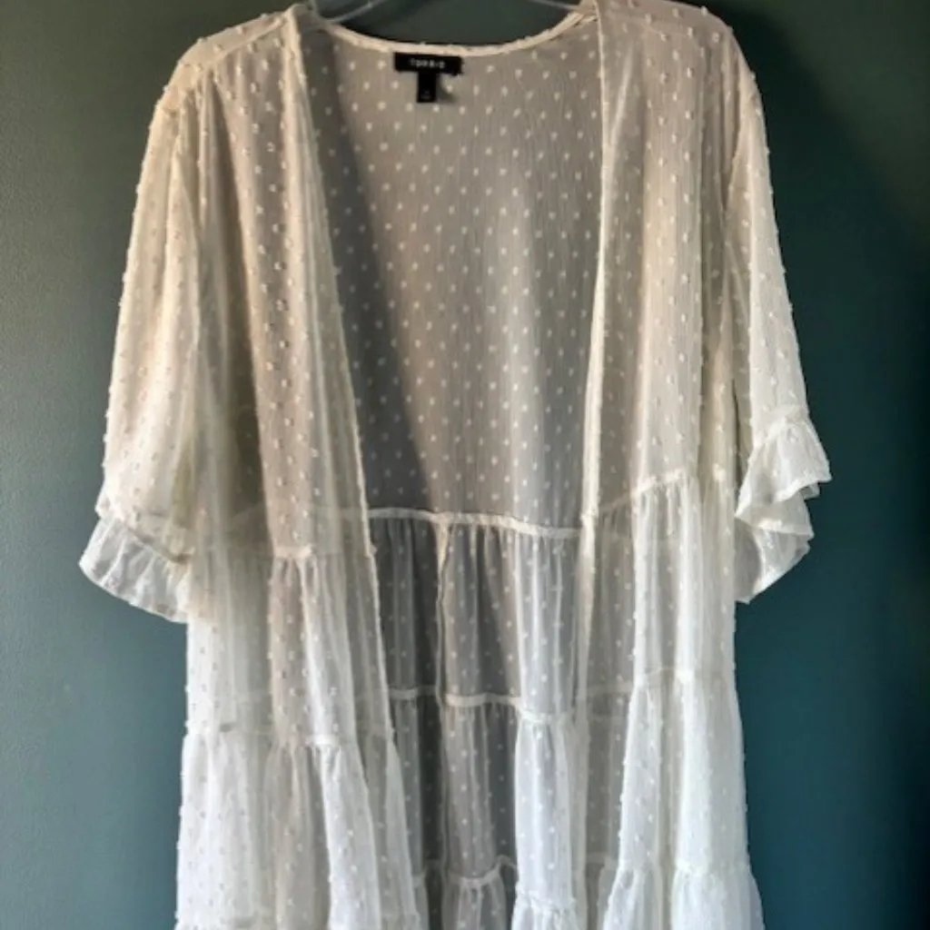 The Torrid White L Cover Up is a feminine and boho-inspired swiss dot sheer drape with short kimono... Show more