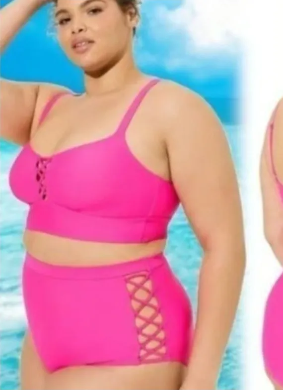 Torrid 2 Pc Swimsuit Womens Plus 3 Hot Pink Bralette Brief Lace Up Beach Bikini Very good gently pre... Show more