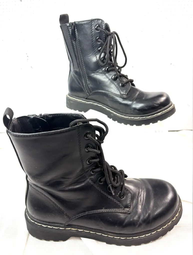 Excellent pre-owned condition Stylish combat boots. Durable PU upper. Comfortable fit.