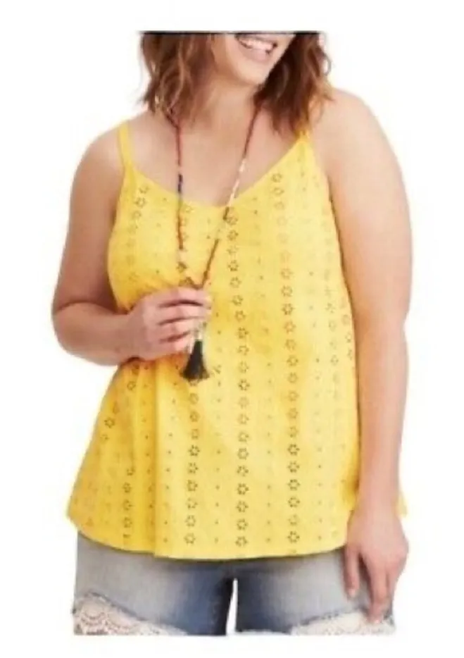 Torrid Butter Yellow Floral Eyelet Cami Tank Top Blouse Size 3X Adjustable straps. 100% cotton. Gr... Show more