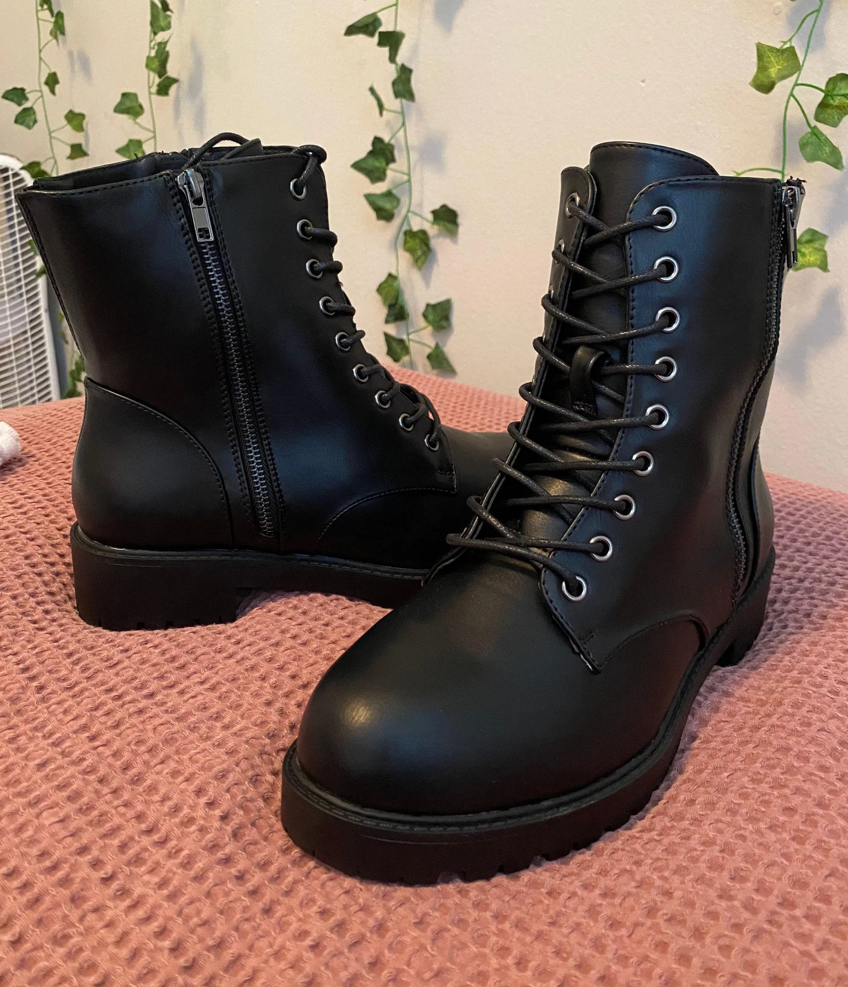 New in box, only worn once to try on. Size 7.5 but fit a bit big on me. Faux leather material, no fl... Show more