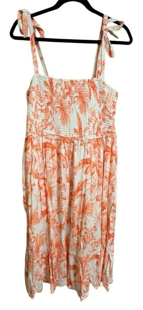 Torrid Coral Orange Tropical Midi Smocked Tie Strap Vacation Luau Dress 1X NWT Brand new with tags,... Show more